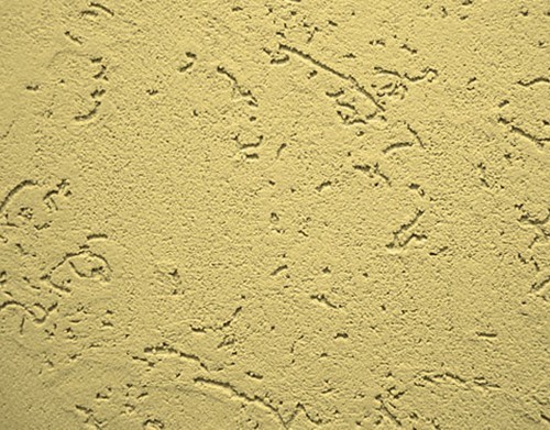 將彩色砂漿與清水按3:1的重量比,先將水倒入拌料桶內,后將粉料倒入,再用電動攪拌器充分攪拌成均勻、無粉粒膏糊狀,待其靜置10分鐘即可用各種紋理工具滾壓成圖案。待表面圖案施工完成12-24小時干固后,再噴刷1-2道美邦專用防污罩面劑。