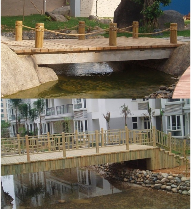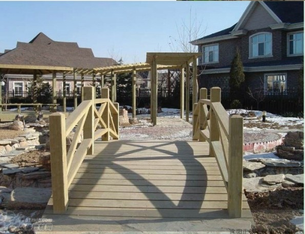 創藝 防腐木拱橋 室外木棧道地板 公園地板圍欄花園地板戶外防腐木木橋