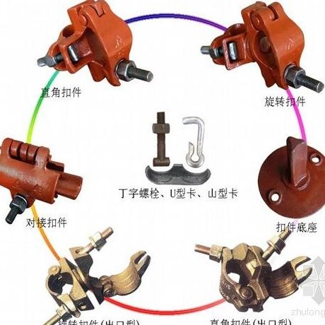 1)直角扣件(十字扣) 用于兩根垂直交叉鋼管的連接;如立桿與大橫桿、大橫桿與小橫桿的連接;