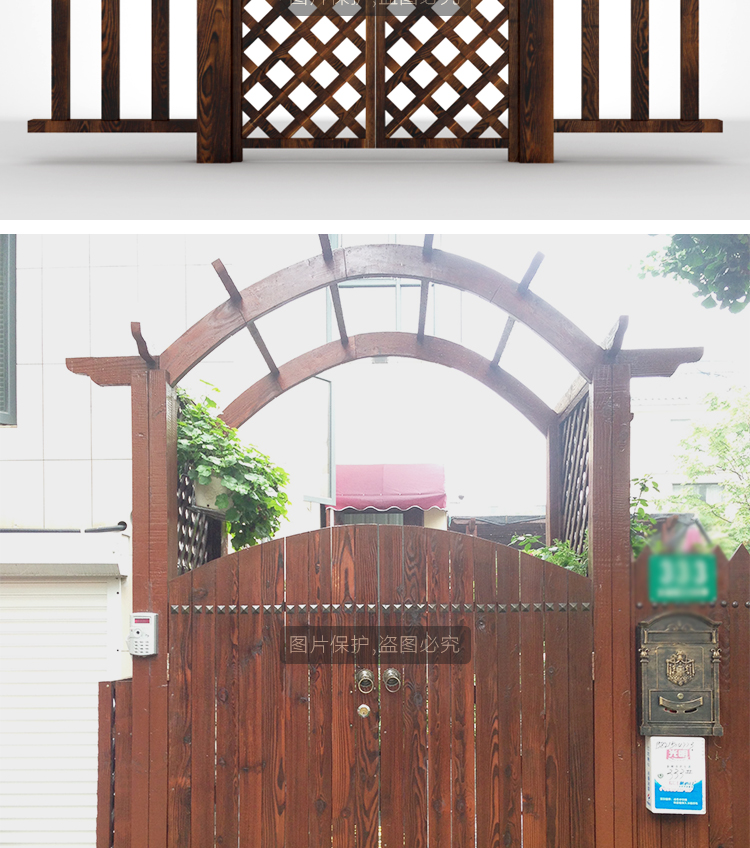 鑫森磊 花園柵欄門(mén)碳化實(shí)木門(mén) 戶(hù)外防腐木圍欄陽(yáng)臺(tái)護(hù)欄庭院木籬笆木柵欄