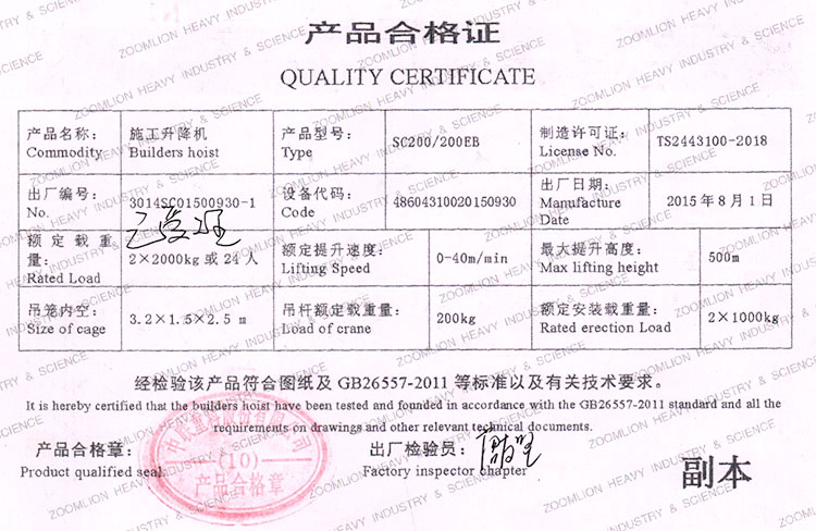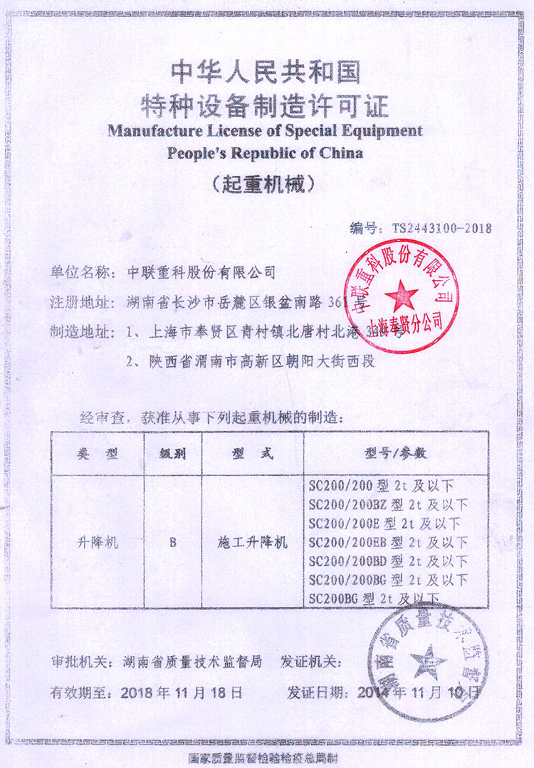 中聯重科 SC200施工升降機 2噸