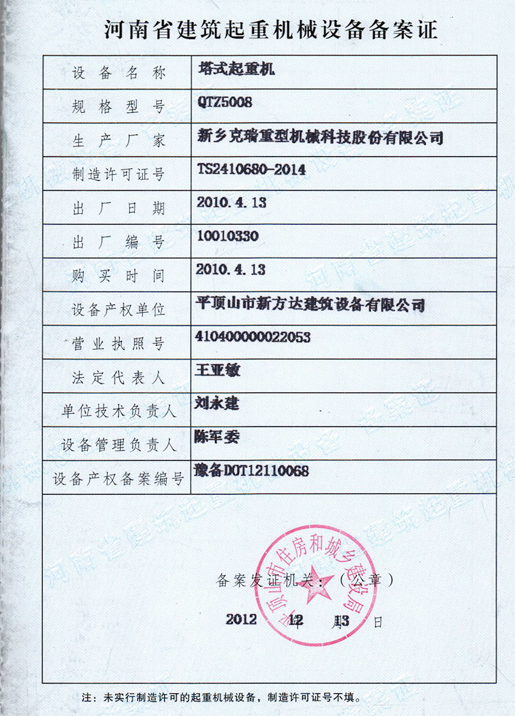 ? ? ? ?平頂山市新方達建筑設備有限公司主要業務包括:各種型號塔吊、施工升降機、物料提升機、小型建筑機械的銷售、租賃、安拆、養護維修、土建工程施工、物流運輸、園林花卉、企業咨詢、企業策劃、廣告制作發布、新型全鋼液壓成型標準扣件(本公司專利產品)的設計、研發、生產、銷售,各種土建工程的勞務承包、勞務輸出、農牧業開發、生態園開發建設等業務。