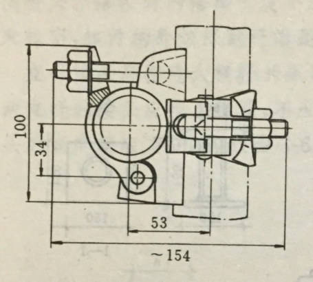 2)旋轉(zhuǎn)扣件(回轉(zhuǎn)扣) 用于兩根成任意角度交叉鋼管的連接;
