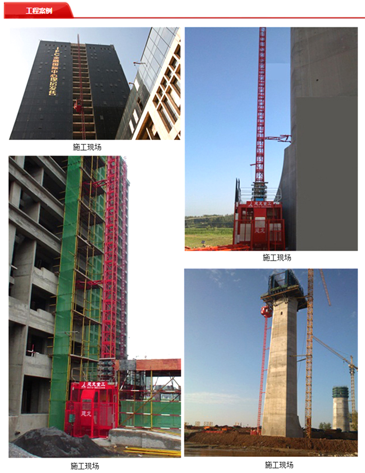 SC200型施工升降機與傳統的施工升降機相比,SC200型施工升降機具有造型美觀、結構輕巧、拆裝方便、安全可靠、適用性強、用途廣泛等特點。根據用戶需要可實現各種形式的組合,包括規則截面和不規則截面。載荷從以前1000kg到現在2000kg,運行速度也由28m/min提升至38m/min,加裝VVVF調速和PLC控制后,速度可實現0~60m/min無級調速。