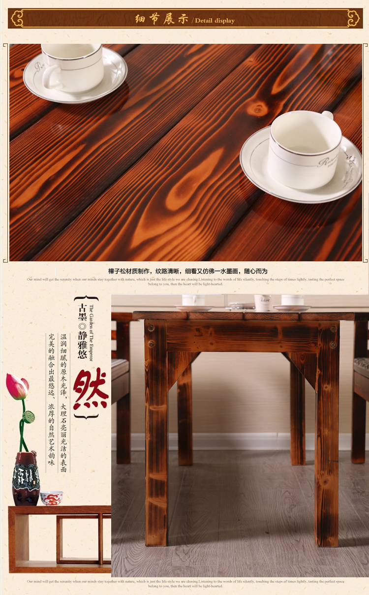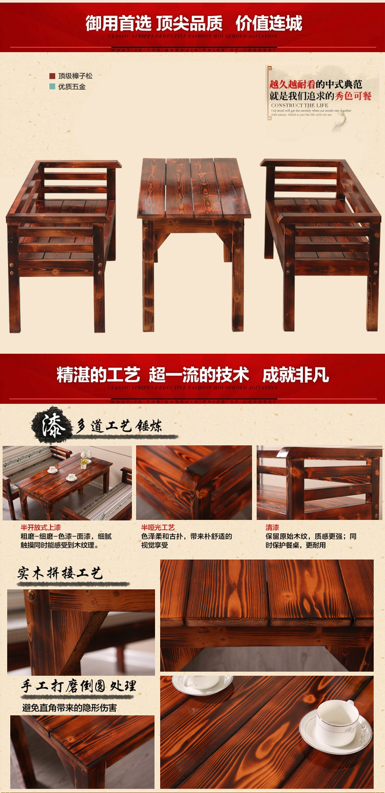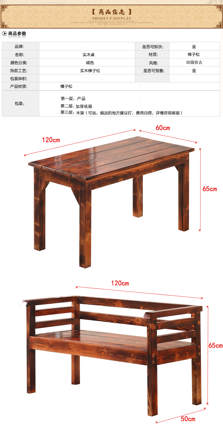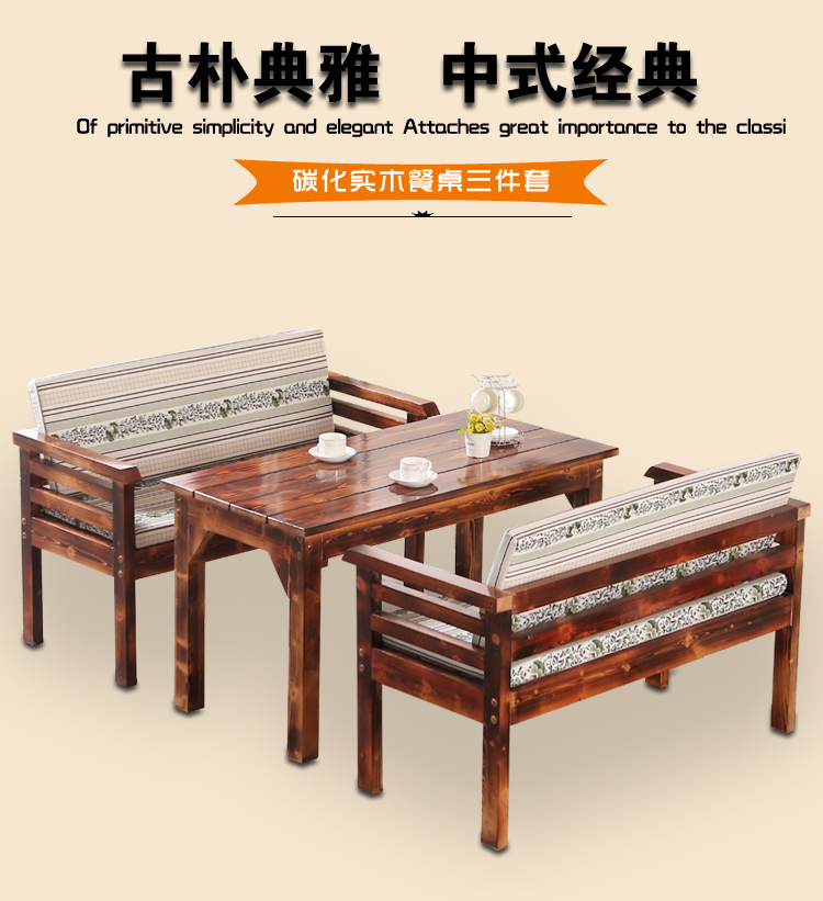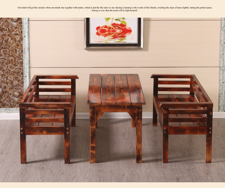 碳化桌椅組合三件套,尺寸顏色都可定制。戶(hù)外休閑、陽(yáng)臺(tái)酒吧咖啡廳快餐店餐桌椅組合,防腐爛、抗白蟻、適用于戶(hù)外;材質(zhì)穩(wěn)定,不易吸水,不易變形;無(wú)特殊氣味,亦適用于室內(nèi)室外陽(yáng)臺(tái);限時(shí)特價(jià),歡迎搶購(gòu)!