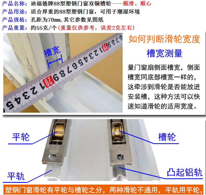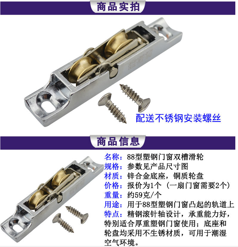 迪福德 迪福德牌 塑鋼窗滑輪 窗戶不生銹銅輪子 塑料門滾輪88型雙銅槽輪