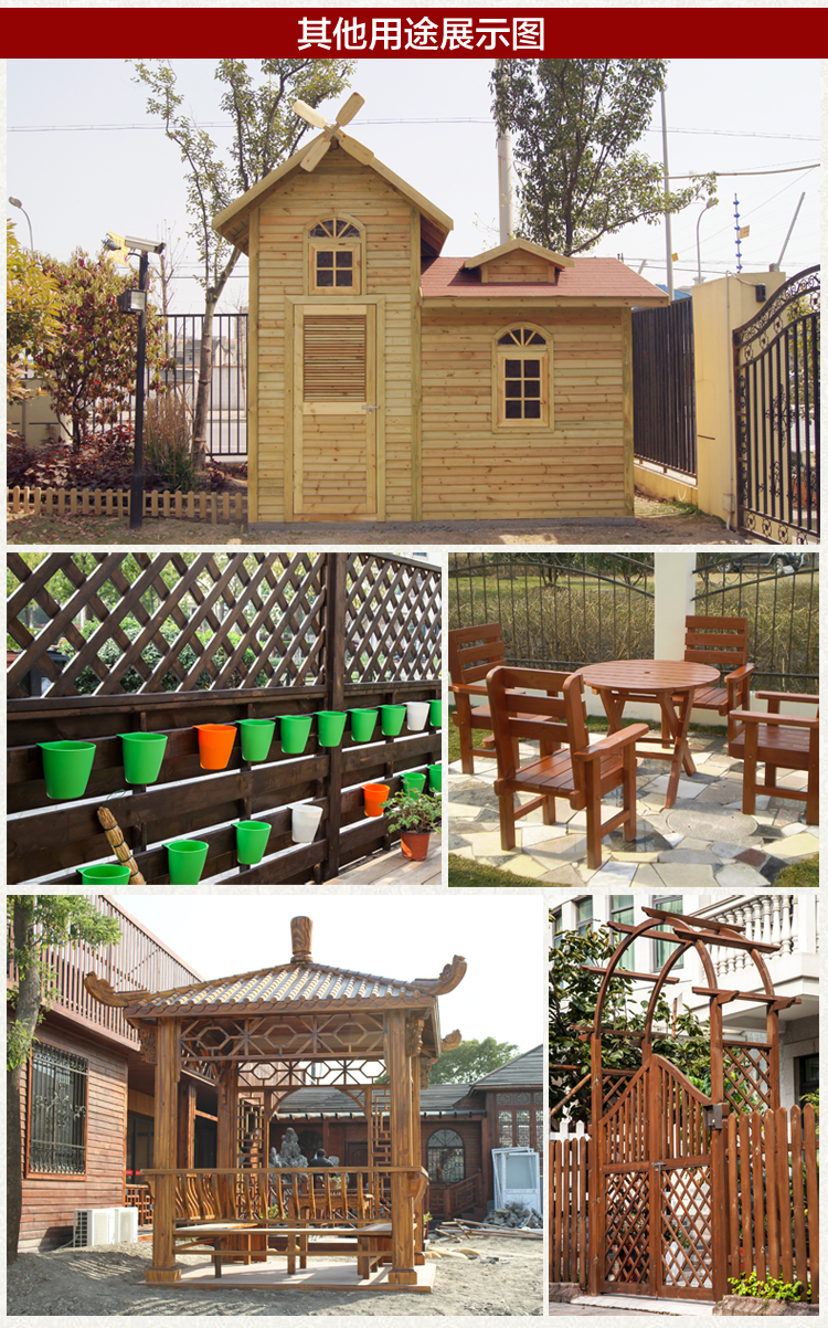 產品用途:本廠專業生產加工戶外園藝景觀防腐木,炭化木,桑拿板等。主要適用別墅、室外園藝園林、戶外休閑場所、室內外裝飾、碼頭橋梁戶外地板等領域。