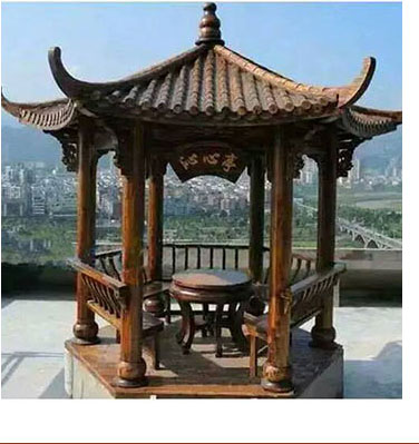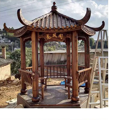 【瓦頂】:本公司產(chǎn)品瓦頂設(shè)計(jì)為古典宮殿式竹節(jié)瓦,三層防水(分別為頂部一層竹節(jié)瓦,中間一層防雨層,最下面一層無(wú)縫實(shí)木木板和支撐梁架),保證雨天下雨不漏水,材料均采用20年以上香杉木制造。