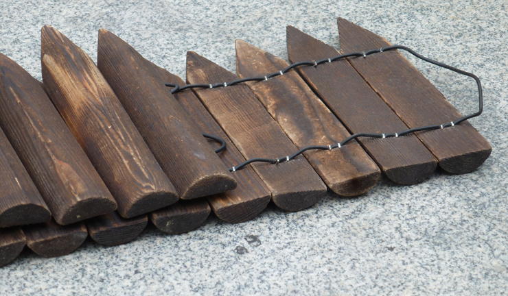 尖頭:高25cm 長120cm 厚1cm 每片木片寬3.5cm