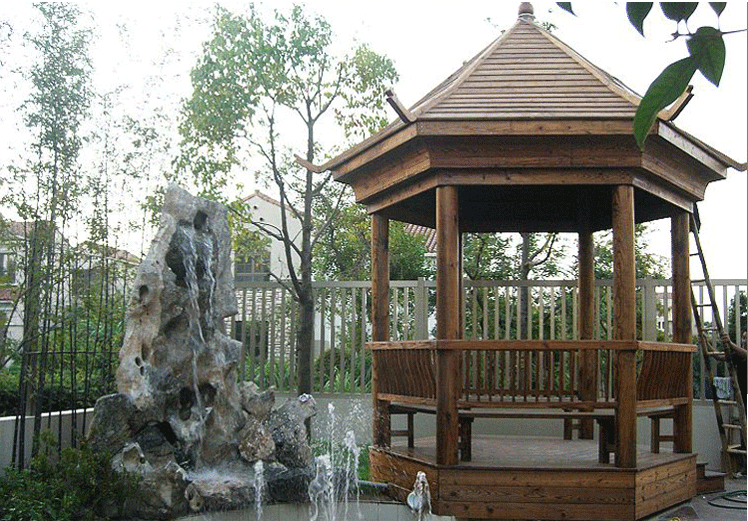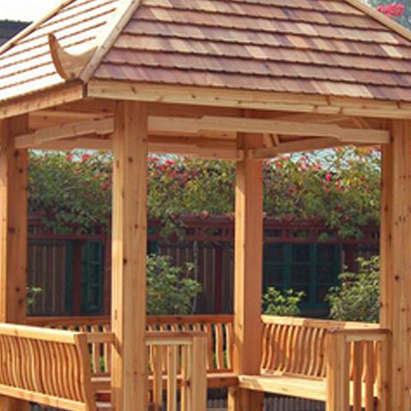 永之盛 防腐木戶外涼亭碳化實木六角涼亭別墅涼亭園藝涼亭公園避風雨涼亭 3925*3000*2900