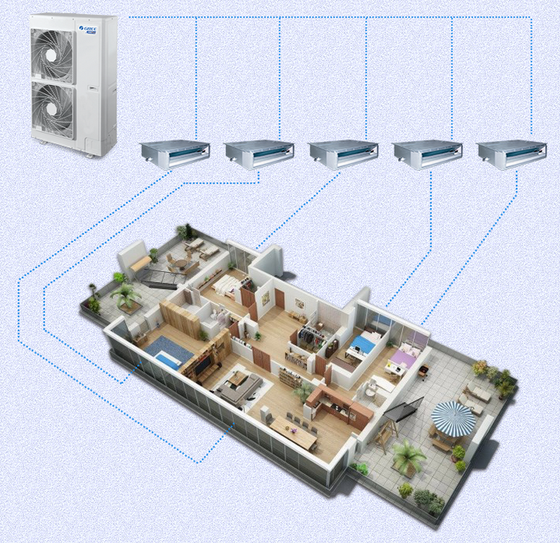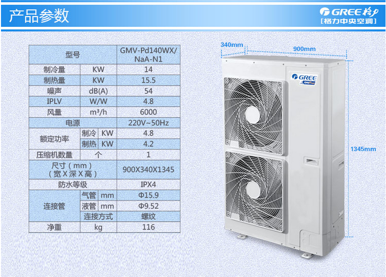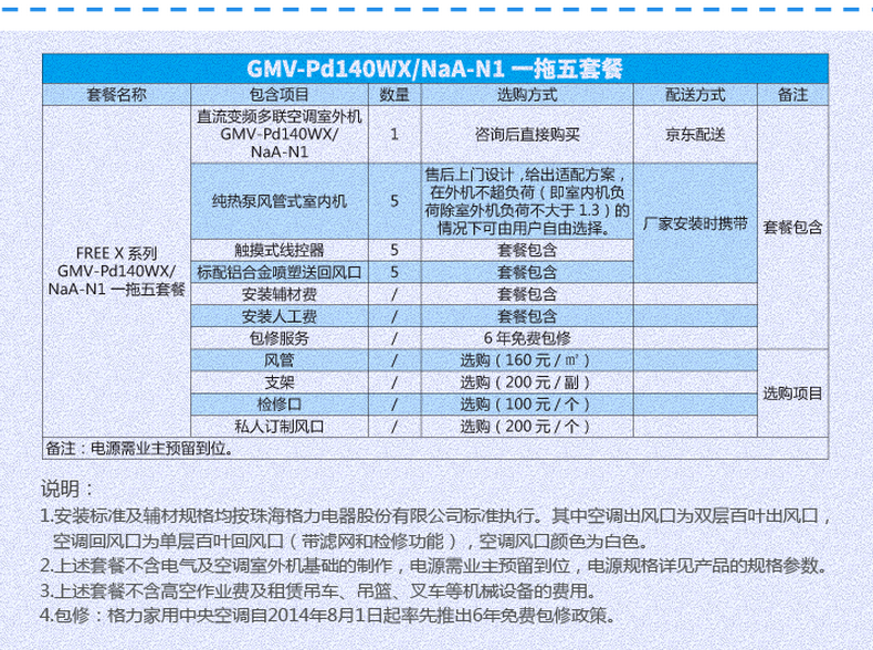 格力 一拖五適用88-120㎡人工輔材全包6年包修液晶面板線控Free系列家用中央空調GMV-Pd140WX/NaA-N1