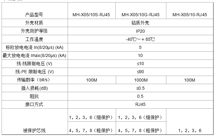 產品的接口形式為標準RJ45接口,保護芯線為8線(12、36、45、78),維護方便。8/20μs最大放電電流Imax可達10 kA/每線,動作反應時間快,適用于高速互聯網絡的雷電浪涌防護。