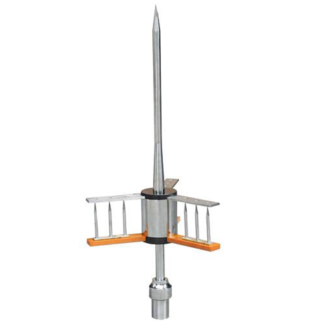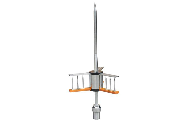 主動式提前放電避雷針由不銹鋼材料制成,由中央收集桿、放射器、出發裝置、激發器和激發器固定板組成,激發器與反射器和中央收集桿是絕緣的,反射器和中央收集桿與大地具有良好的電氣連接,激發器底座由合成樹脂做成,適合于任何腐蝕環境。