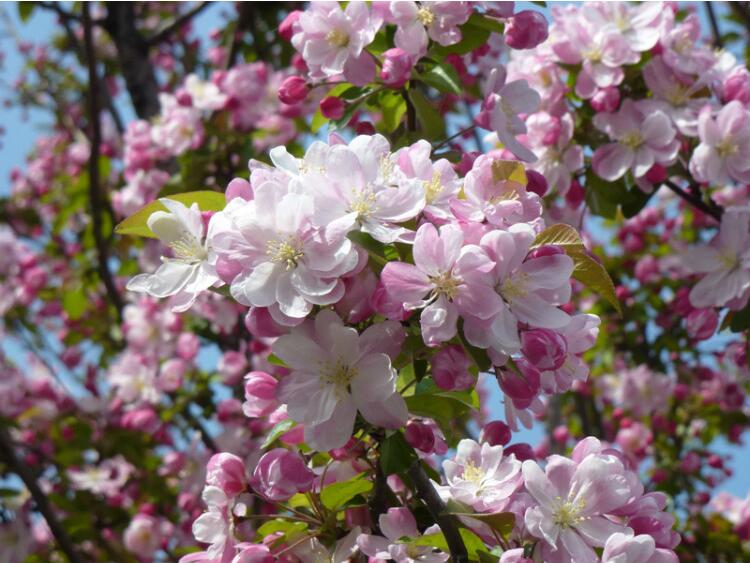 ? ? ? ?西府海棠在海棠花類中樹態峭立,似亭亭少女。花紅,葉綠,果美,不論孤植、列植、叢植均極美觀。最宜植于水濱及小庭一隅。郭稹海棠詩中“朱欄明媚照黃塘,芳樹交加枕短墻。”就是最生動形象的寫照。新式庭園中,以濃綠針葉樹為背景,植海棠于前列,則其色彩尤覺奪目,若列植為花籬,鮮花怒放,蔚為壯觀。