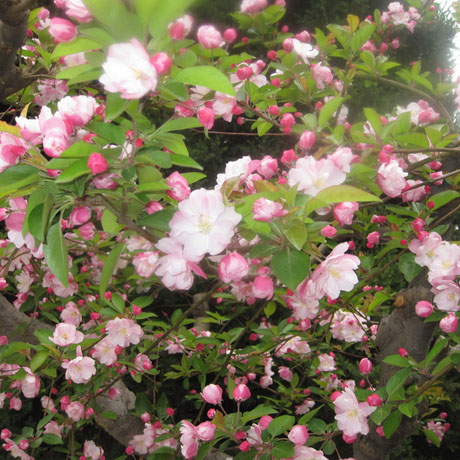 ? ? ? ?適合高檔別墅、綠化工程。落葉灌木或小喬木。樹形峭立,高可達8米。幼枝有短柔毛,老皮平滑,紫褐色或暗褐色;葉長橢圓形,先端漸尖,莖部楔形,長5-11厘米,寬寬2-4厘米,邊緣有鋸齒,葉柄細長2-3.5厘米;傘形總狀花序,花重瓣,淡紅色,約4厘米,生于小枝頂端;梨果球狀,徑1.5厘米,紅色。3-5月開花。 喜光,耐寒,耐干旱,忌水濕。喜土層深厚、肥沃微酸性至中性土壤。在北方干燥地帶生長良好。
