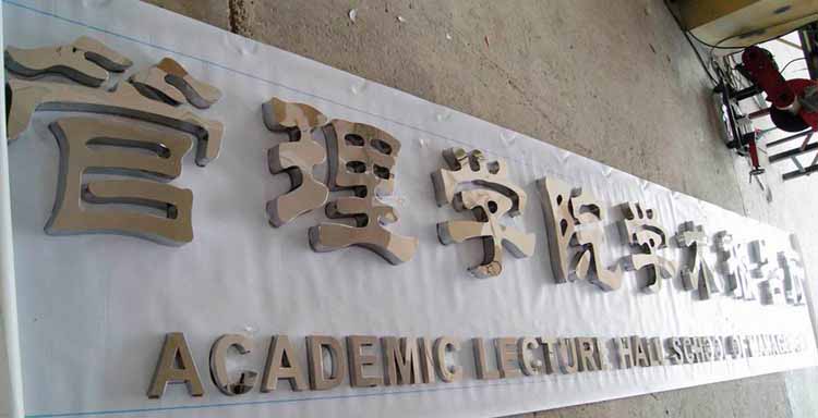 ? ? 不銹鋼立體字一般都用常用廣告材料,有亞克力、PVC、鋁型材、雙色板等等。亞克力采用后面絲印烤漆的工藝,也可以背面雕刻填漆,然后再烤漆。PVC板材在雕刻后,烤漆絲印,有些有要求的需要在表面上再噴一層清漆,能夠保護(hù)絲印的內(nèi)容不受磨損。鋁型材,可以在表面絲印,罩清漆,也可以粘貼即時貼或反光膜。雙色板是最便宜的材料,直接雕刻就可以了。